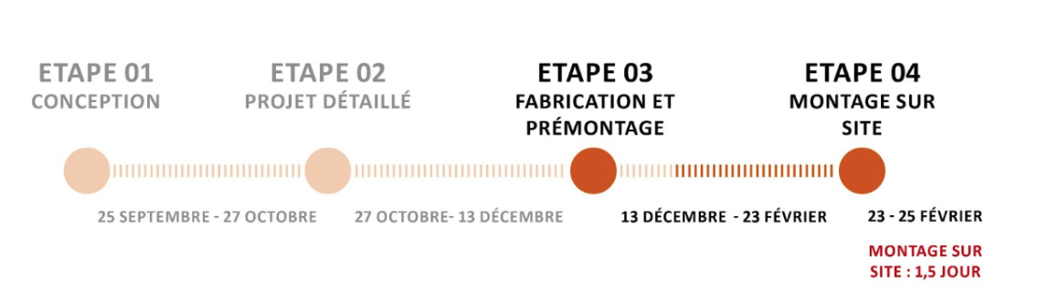 L’engagement des professeurs encadrants de l’ENSA Paris Malaquais, le bureau d’étude technique Gustave ingénieur, L’association Avenir Bois, entreprise étudiante de l’ENSTIB ayant rejoint l’aventure et les formateurs des Apprentis d’Auteuil a été déterminant dans l’accompagnement des étudiants. Tous contribuent activement à transformer cette initiative en une réalisation concrète, favorisant une réflexion approfondie sur l’innovation architecturale et la durabilité.